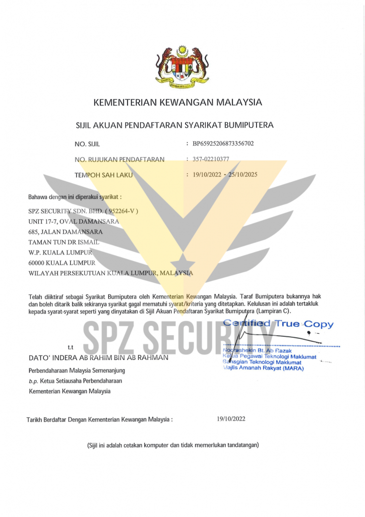 Sijil Akuan Pendaftaran Syarikat - MOF